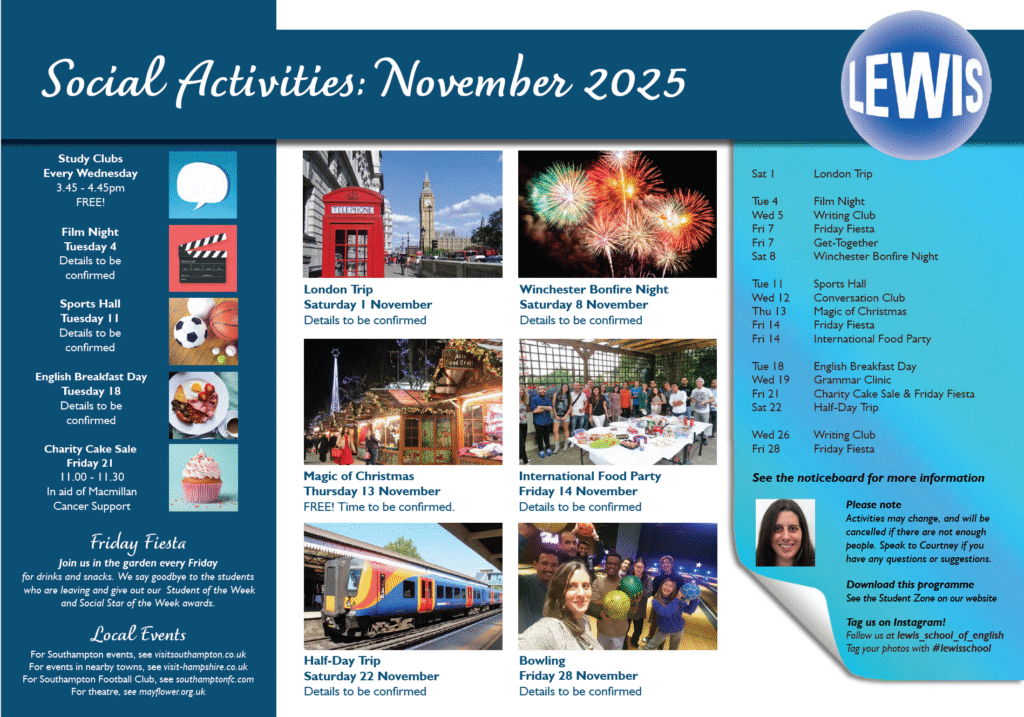 Our trips, parties and other activities give you the perfect opportunity to learn about British culture, practise your English and make new friends. We offer a fun and varied social programme all year round, with a mix of free and paid activities.